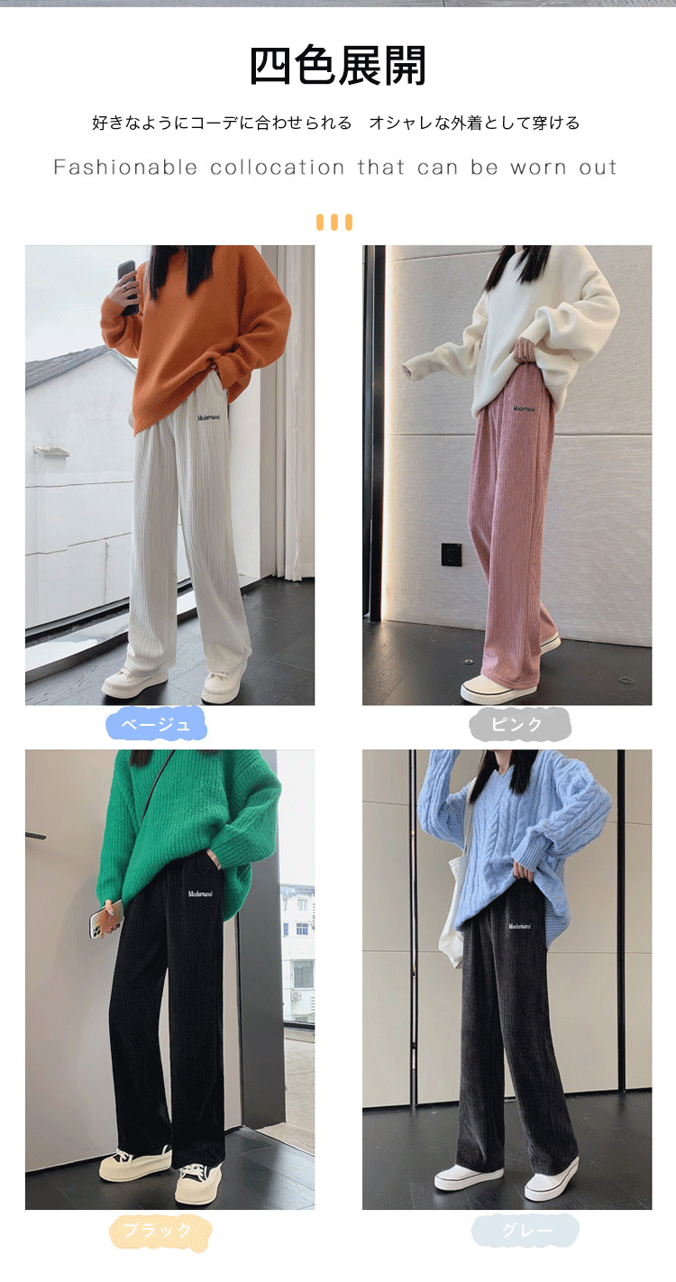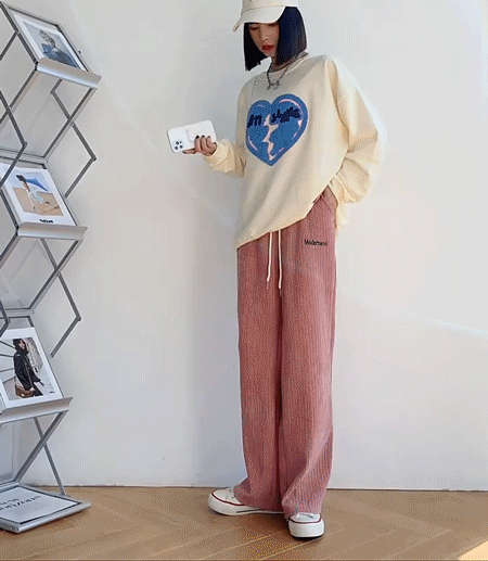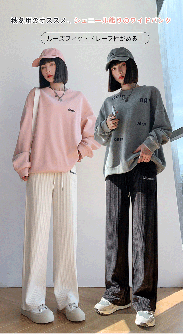シェニール英文字柄ワイドパンツ